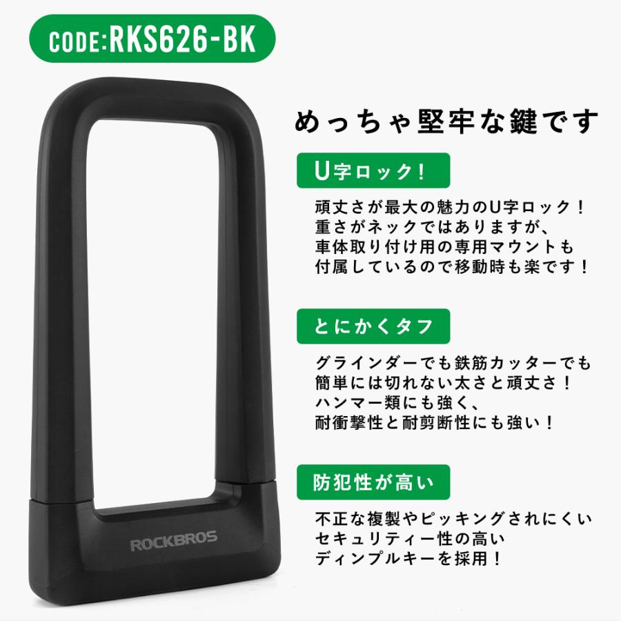 U字ロック 鍵 超頑丈 長時間保管 盗難防止 自転車 バイク 太い 切れない Df Rks626 Bk Rockbros 通販 Yahoo ショッピング